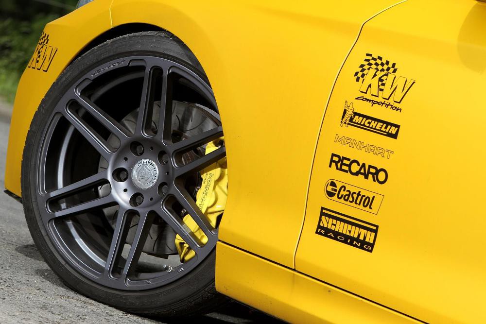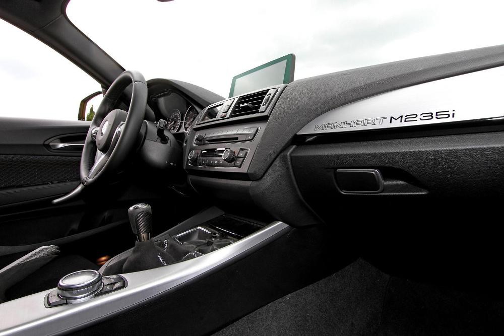 Что же касается "донора" M235i от Manhart, отличается заниженной подвеской с 3-мя режимами работы, тогда как интерьер теперь уже двухместного купе встречает пилота сиденьями Recaro с четырехточечными ремнями безопасности, отделкой карбоном и упомянутым каркасом безопасности.